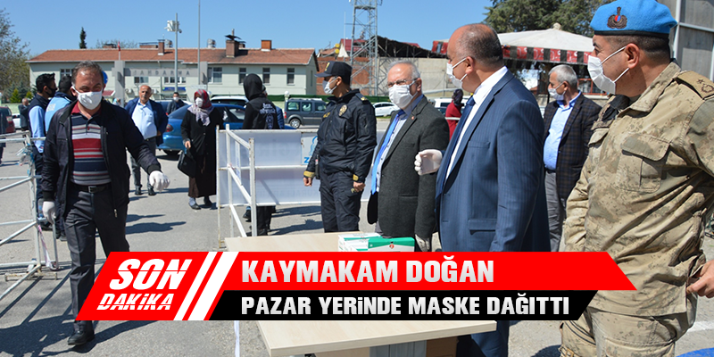 Pazar yeri girişinde oluşturulan stant da vatandaşlara maske dağıtan Kaymakam Doğan, maskenin nasıl takılıp kullanılması gerektiği konusunda da bilgiler verdi.